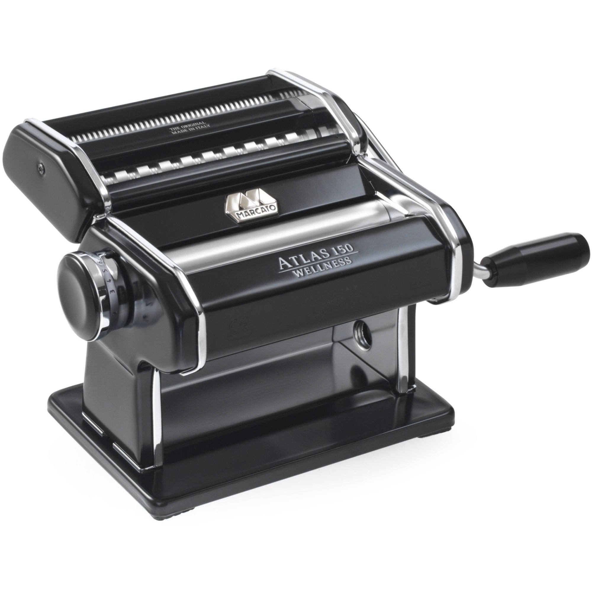 Skäm bort dina nära och kära med läcker hemgjord pasta. Med Marcato Atlas 150 kan du göra lasagneplattor, fettuccine och tagliolini. Det finns även 13 olika tillbehör att köpa till om du vill ha möjlighet att göra ännu fler pastasorter. Maskinen har en Easy-to-grip vev som gör att du enkelt kan knåda ut degen och gummifötter som ser till att den står stabilt på bänken under hela arbetet. Du kan välja mellan tio olika tjocklekar som du enkelt ställer in på vredet på sidan av maskinen. Maskinen torkas enkelt av med en trasa efter arbetet. Marcato tillverkade sin första pastamaskin 1930 och har sedan dess passionerat skapat produkter för att göra människor glada. Produkterna är designade för de som älskar perfekt gjorda saker och har återupptäckt njutningen i att äta bra och säkert. Specifikationer:- Finns i 6 olika färger- Det finns 13 extra tillbehör att köpa till- Kan göra 3 olika sorters pasta- Easy-to-grip vev – Material: aluminium – 10 olika tjocklekar